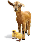 Goat and 2 Chickens.